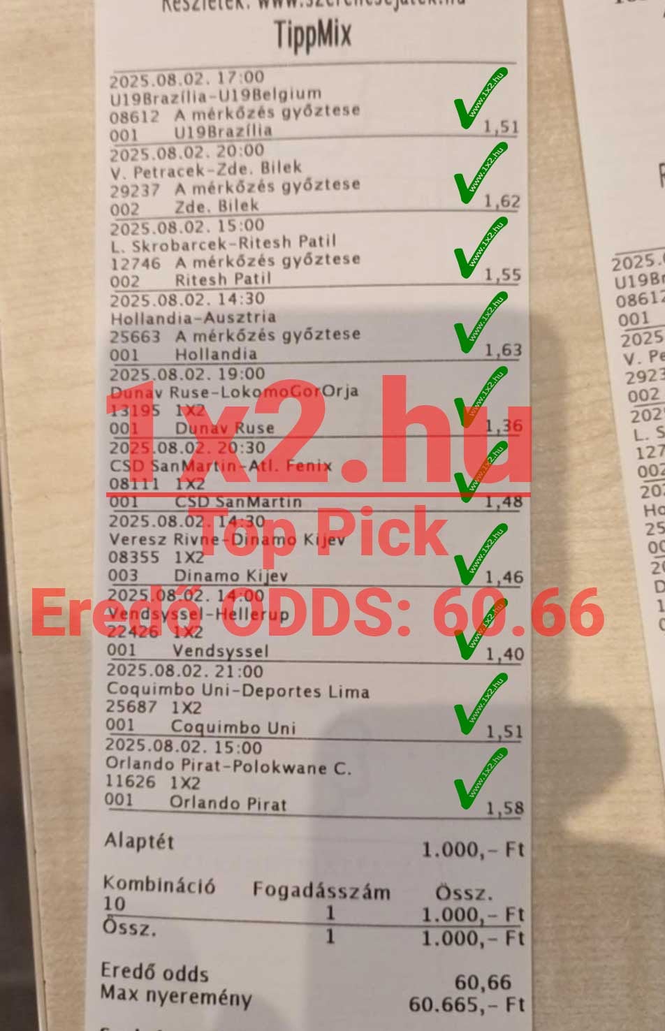 Még csak néhány nap telt el augusztusból, de az 1×2.hu Tippmix tippek már most elképesztő formában vannak! Galériánkban egymást érik a szebbnél szebb nyertes szelvények. A hónap eddig igazi aranybánya a sportfogadás szerelmesei számára.