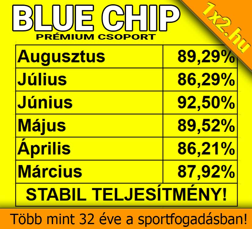 🎯 BLUE CHIP: Brutális, 89.29 %-os Tippmix tipp hatékonyság augusztusban is ❗ ❗ ❗