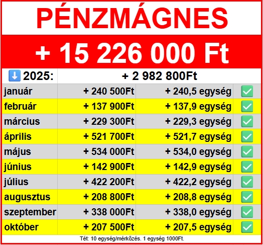 – Nyeremények 2025 október: +207.500 Ft ✅