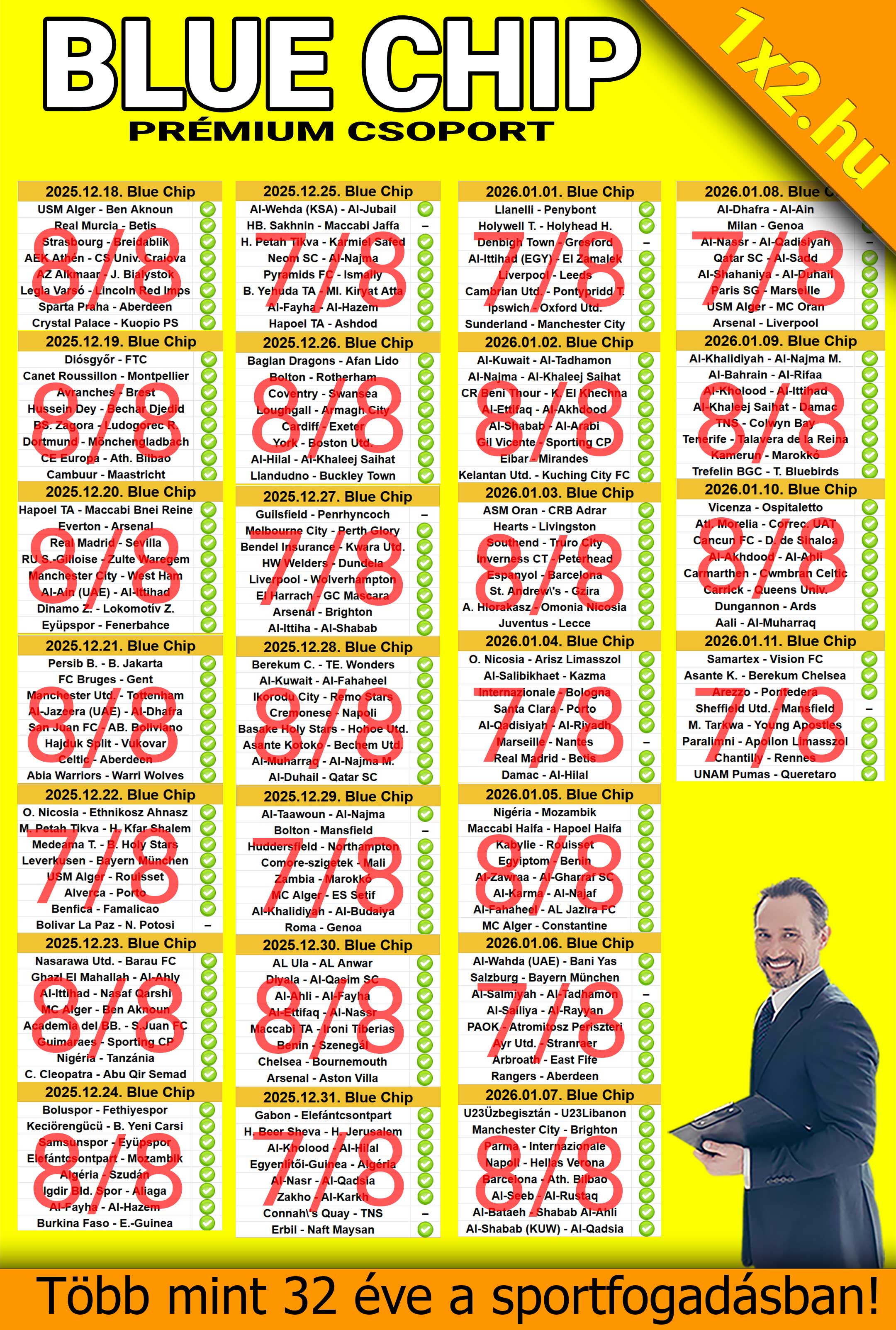 ✔ több mint 32 év sportfogadói tapasztalat