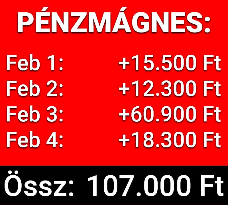 🧲 PÉNZMÁGNES Prémium: Jól kezdődik a február ❗ ❗ ❗ Négy nap alatt 107.000 Ft-ot kerestünk ❗ ❗ ❗