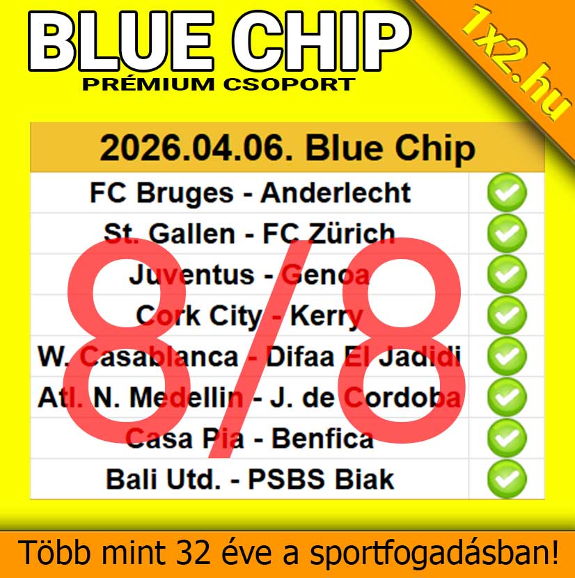 🤠 BLUE CHIP: Tegnap is 8/8 ❗ ❗ ❗ Extrém 93.75%-os áprilisi hatékonyság ❗ ❗ ❗