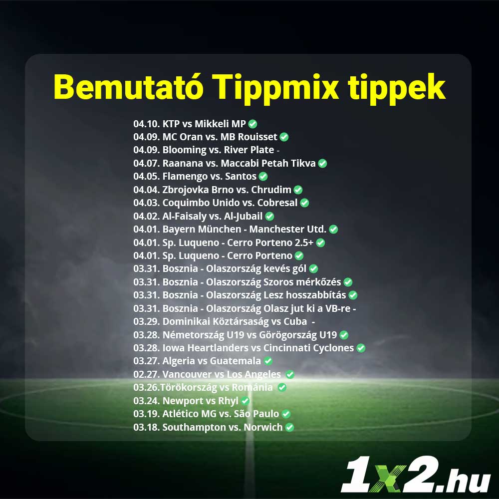 Az Ingyenes Benutató Tippmix tippet itt találod: https://tippmixtippek1x2.hu/ingyenes-foci-tippek/