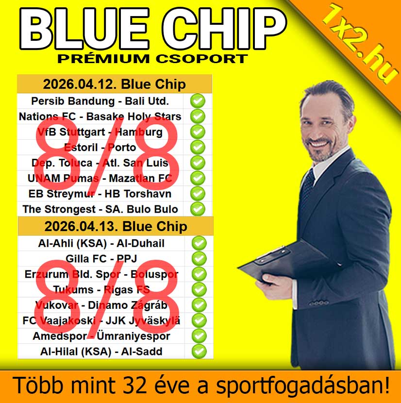 🤠 BLUE CHIP: 8/8 – Tegnap is durrant ❗ ❗ ❗ Extrém, 94,23 %-os áprilisi hatékonyság ❗ ❗ ❗