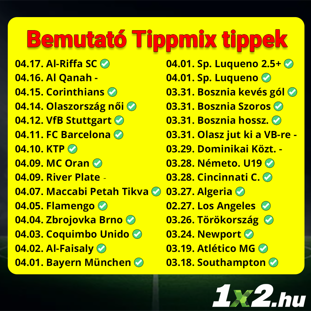 Nincs megállás, a tegnapi 8 Tippmix tippet tartalmazó szelvényünk is hibátlan lett!