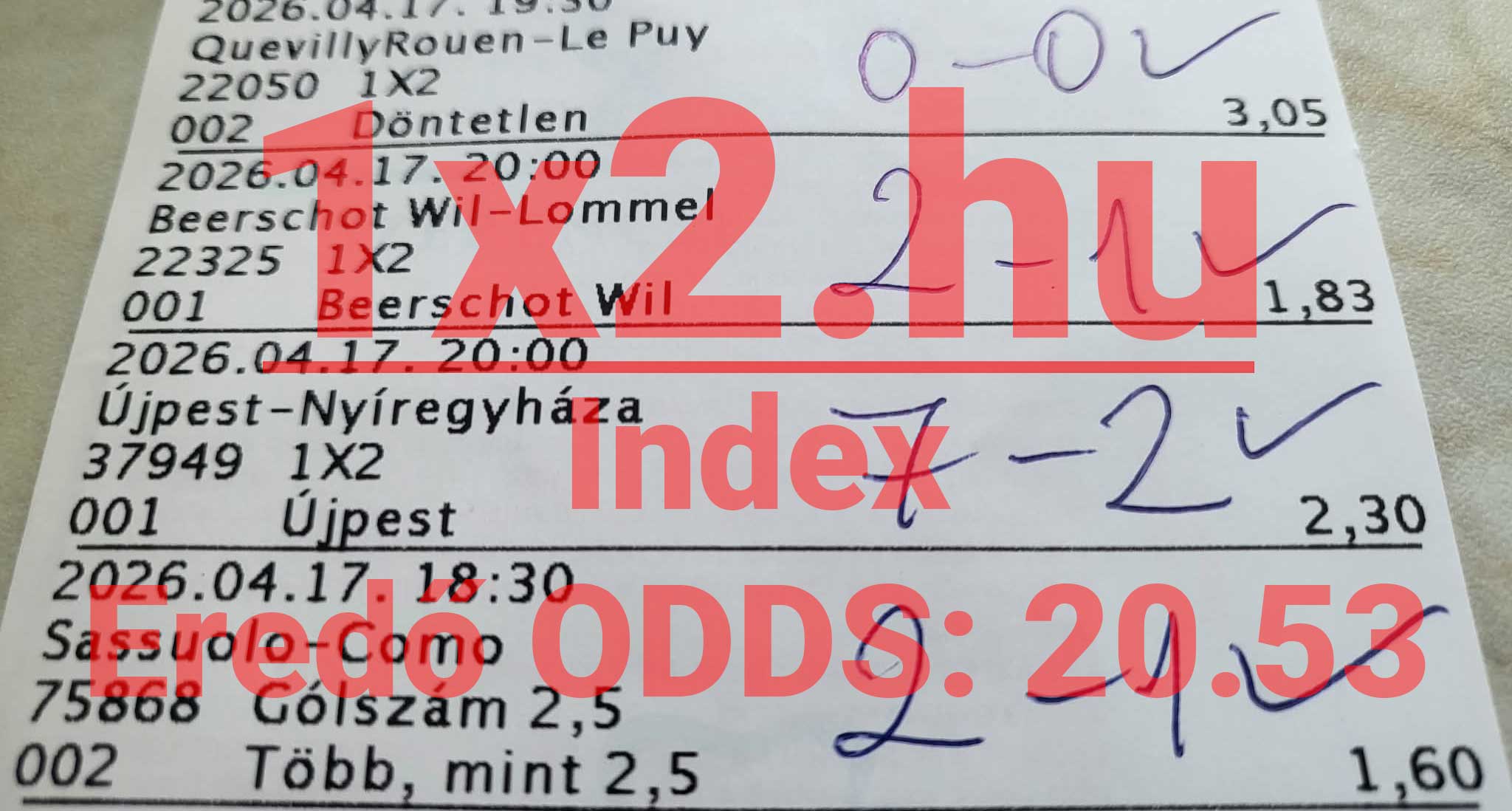 ‼️ 1×2.hu – 4 INDEX Tippmix tipp is elég volt a 20.00-as oddshoz 👇