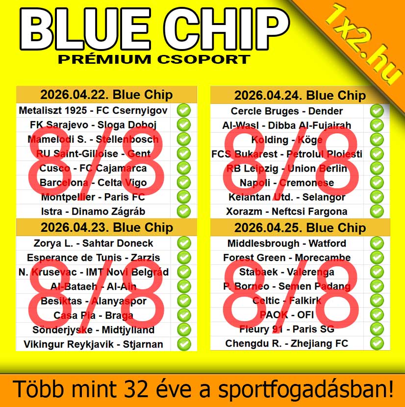 🤠 BLUE CHIP: Szerda 8/8 ❗ ❗ ❗ Csütörtök 8/8 ❗ ❗ ❗ Péntek 8/8 ❗ ❗ ❗ Szombat 8/8 ❗ ❗ ❗