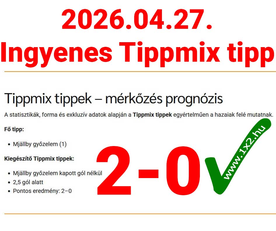 Az Ingyenes Benutató Tippmix tippet itt találod: https://tippmixtippek1x2.hu/ingyenes-foci-tippek/