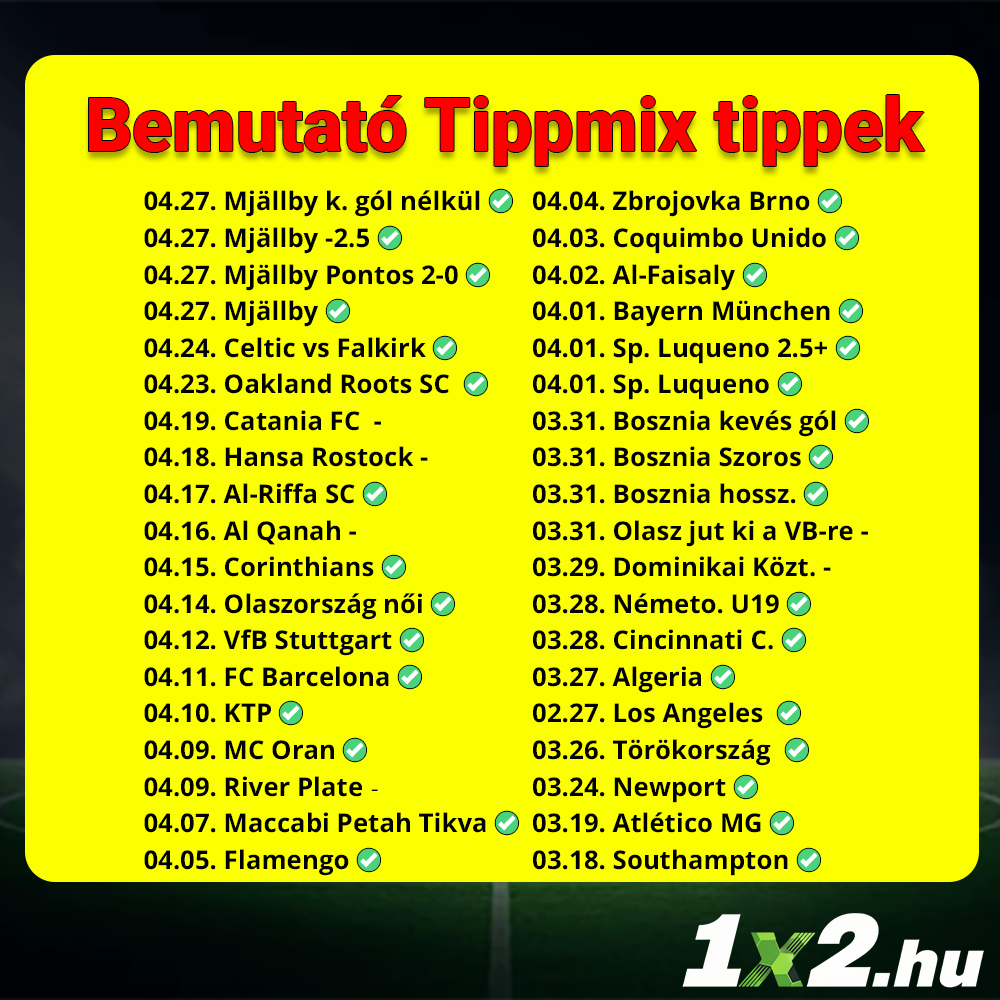 A tegnapi Ingyenes bemutató tippmix tippek is nagyot szóltak:
