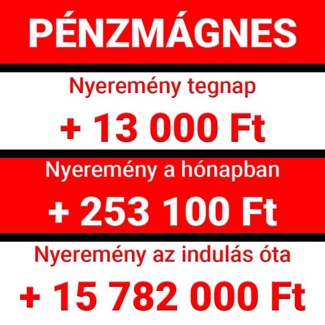 Garantáltan Magyarország egyik legsikeresebb sportfogadással foglalkozó csoportja a Pénzmágnes. A 2020 Júniusában induló Pénzmágnes Prémium csoport ezidáig(2025 szeptember) több mint 15.000.000 Ft nyereséget könyvelt el melyet a statisztika oldalon te is nyomon követhetsz. A Pénzmágnes asztalitenisz tippeket Single fogadásban, egységnyi téttel ajánljuk megjátszásra. A Pénzmágnes tippekről tudnod, kell, hogy a kínálat szerint napi 5-10 tippel jelentkezünk, amelyeket általában a délelőtti órákban egyszerre postázunk az email címedre. Amennyiben te is a maximumot szeretnéd kihozni a Pénzmágnes asztalitenisz tippekből akkor a hagyományos papír alapú fogadási lehetőség mellet szükséged lesz egyéb online felületre is, így biztosan egyetlen egy tippről sem fogsz lemaradni.